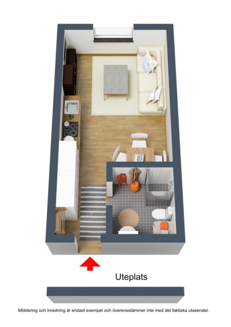 Uteplats möjlighet i anslutning till entré där utrymme för mindre utemöbelgrupp ges.