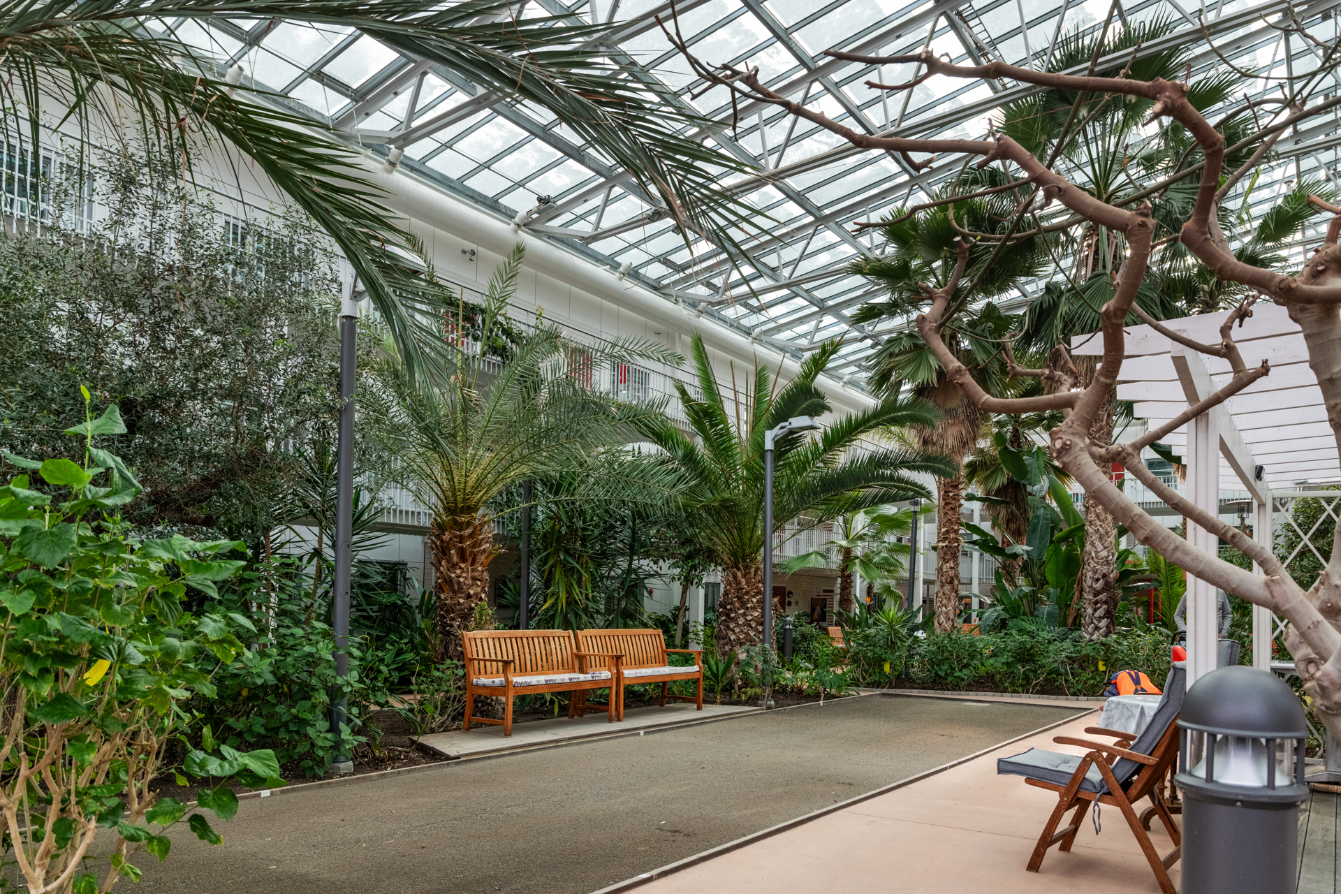 Den tropiska trädgården är Bovierans hjärta. Här har vi fester, spelar boule och träffas mm. vår trädgårdsgrupp lägger ner ett fantastiskt arbete för att sköta om alla växter, blommor och träd. Vi har en trädgårdsmästare som hjälper och lär oss att sköta om denna fantastiska vinter trädgård. Gästlägenhet finns hyras av dig som boende eller till dina gäster för 200kr/dygn Större samlingslokal kan bokas gratis för tillställningar av den större sorten.